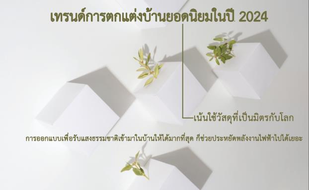 ในปี 2024 เทรนด์การตกแต่งบ้านจะมีการเปลี่ยนแปลงไปตามไลฟ์สไตล์และรสนิยมของผู้คนในยุคสมัยนั้น ซึ่งสามารถสรุปเทรนด์สำคัญๆ ได้ดังนี้